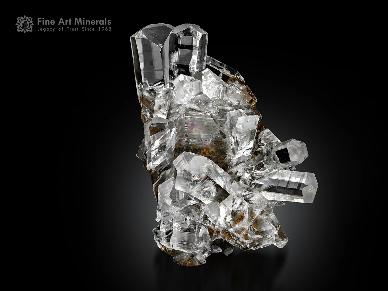 This elegant Calcite with Pyrolusite specimen captivates with its sharply defined, crystal-clear calcite prisms arranged in a refined and sculptural formation. The transparency is excellent, allowing light to pass cleanly through the faces and illuminate subtle internal textures. Crisp edges and well-formed terminations enhance its architectural presence, while the dark, richly textured pyrolusite matrix provides contrast and depth. The overall balance creates a visually striking and display-worthy piece.