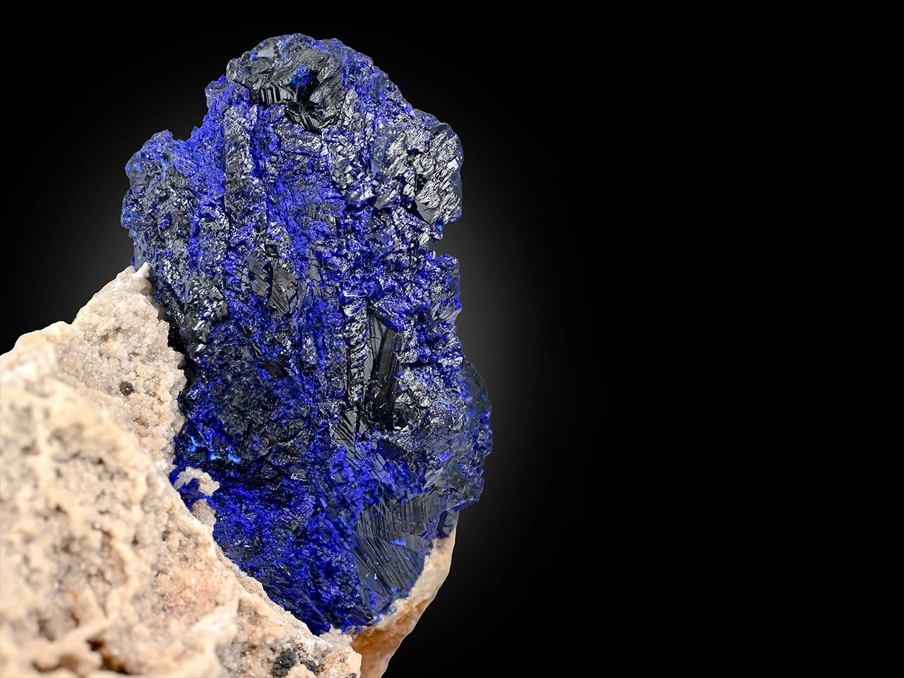A striking specimen featuring richly colored lazurite crystals set on a hard natural matrix. The lazurite displays an exceptionally deep royal blue with strong saturation, giving the piece a bold, captivating presence. Lazurite is the mineral responsible for the famous gemstone lapis lazuli and is admired for its intense blue color. The rugged matrix provides a natural contrast that enhances the vivid blue tones, creating a powerful, visually appealing display.