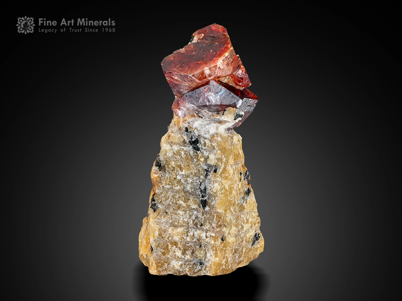 There is a natural sense of movement and life in this zircon specimen, where a cluster of crystals rises organically from the matrix. Each crystal has its own presence, yet together they create a balanced and engaging composition that feels both lively and harmonious. The geometry is sharp and well defined, and the rich reddish tones glow warmly as light passes through, giving the piece depth and energy. The way the crystals are grouped adds visual interest from every angle, while the contrast with the lighter matrix enhances their color and form. It stands confidently on its own, making it easy to appreciate as a display piece. Overall, it is a very pleasing and expressive specimen, with a natural beauty that feels both dynamic and refined.